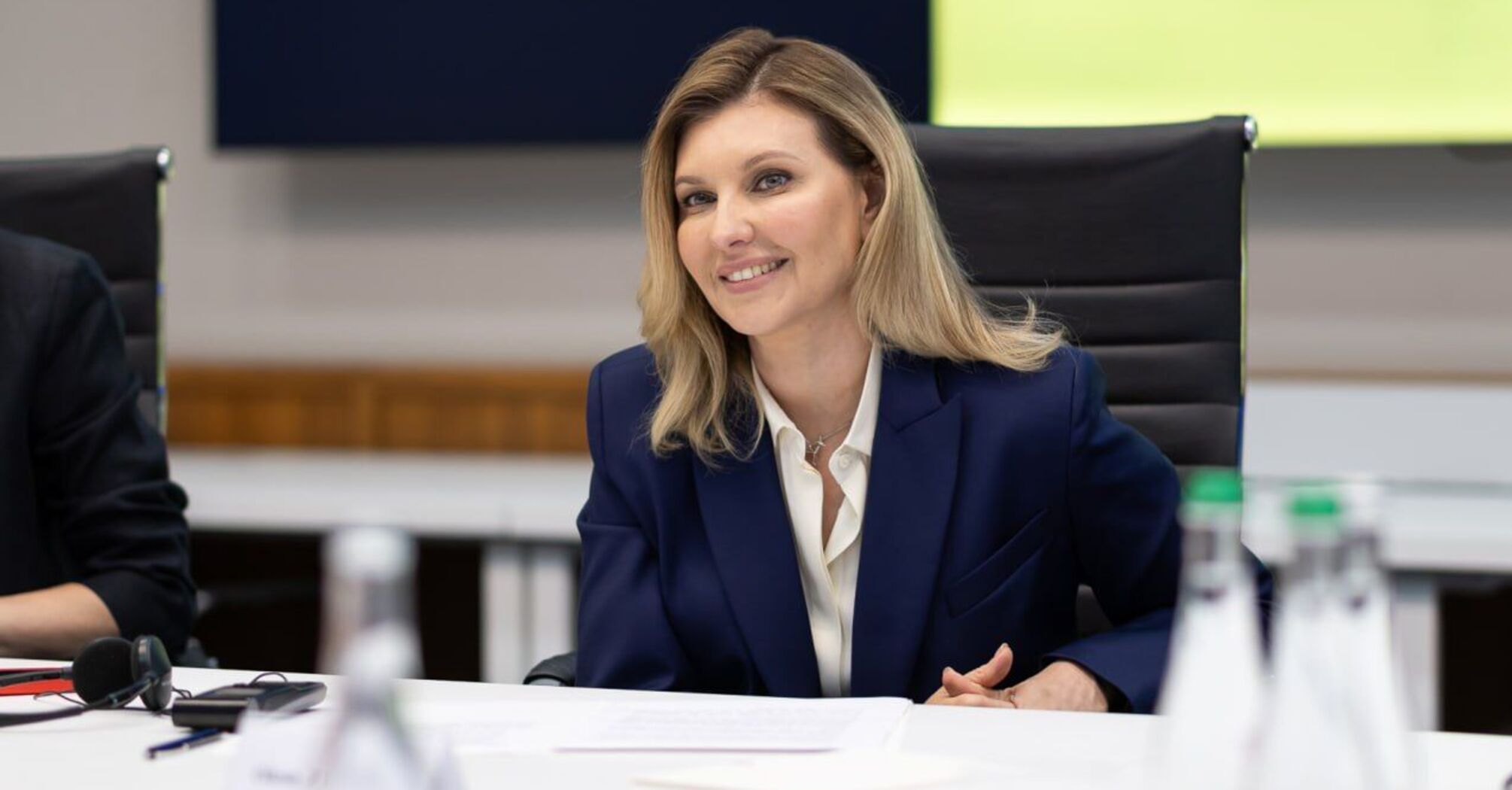 In early August, Zelenska held a video call with the wife of the President of Guatemala, Lucrecia Peinado. At the time , the Ukrainian first lady wore a sapphire-colored blouse.
