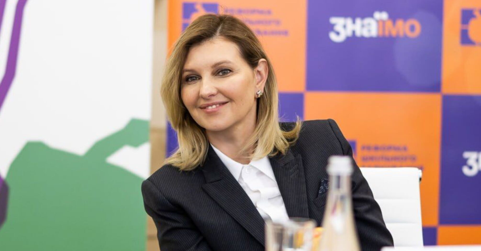 A pinstriped suit and butterfly earrings. Zelenska has lunch with lyceum students in Kyiv region