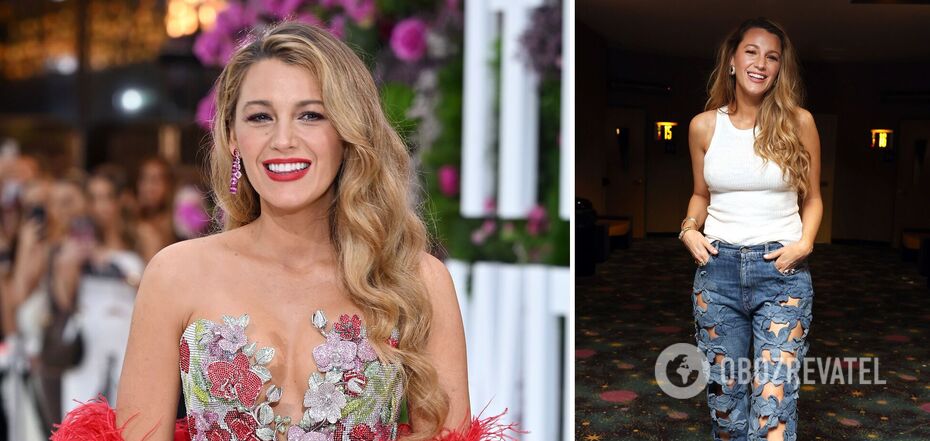 To attend the first screening of the romantic drama, Blake Lively opted for a sleek bow where she combined casual and sophisticated style. For the top, the star chose a simple white T-shirt with thin straps, which harmonized with the main element of the look - jeans with a lot of cutouts along the legs in the shape of hibiscus flowers.