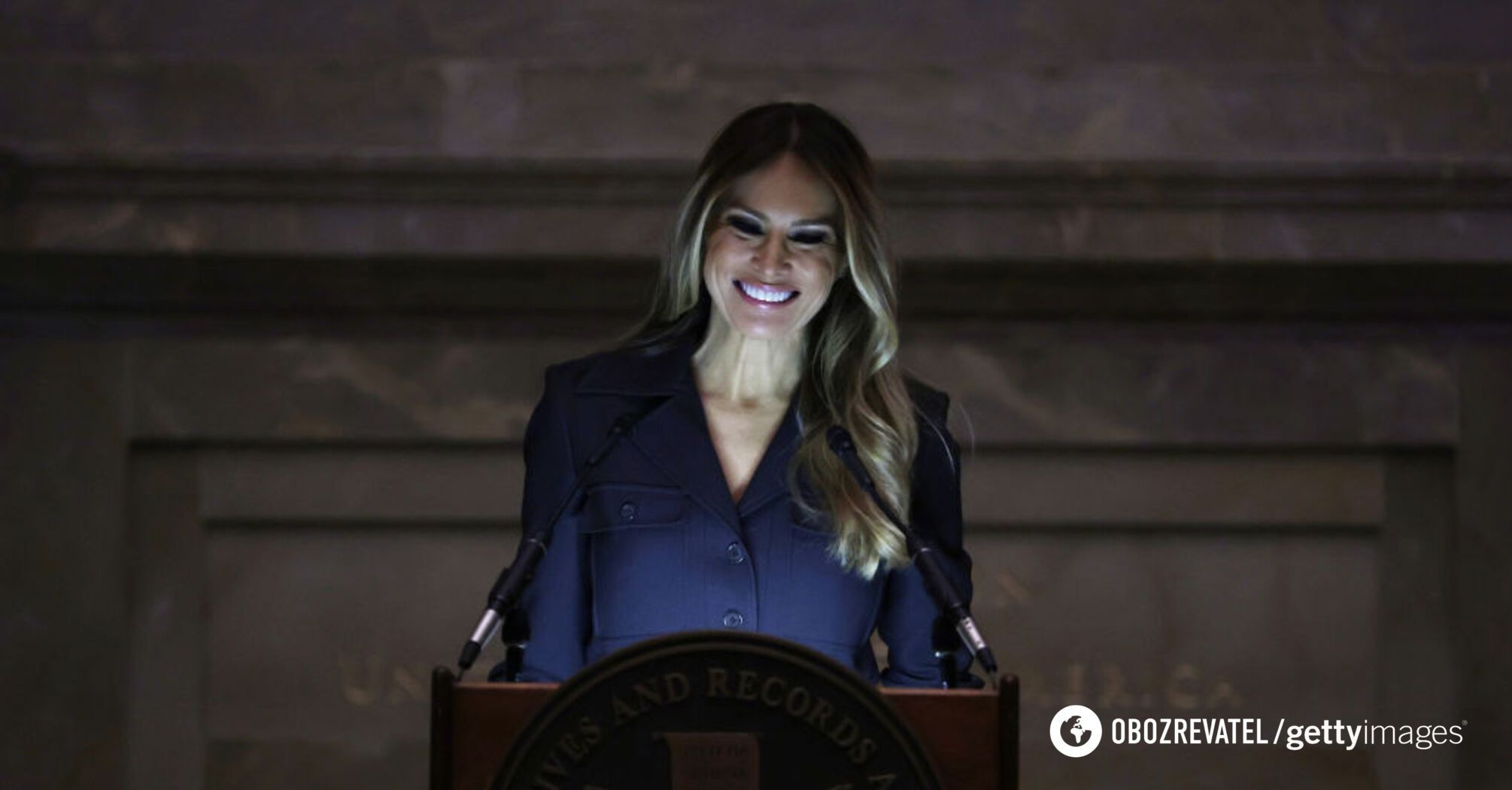 Her pose in front of the Washington Monument is a symbol of power. The fingertips of the First Lady of the United States are firmly placed on the mirrored table. According to Shaw, in this way, Melania Trump demonstrates her readiness to get to work, fulfilling the unique role of defender of the disenfranchised. She also demonstrates that she has moved from the peripheral space of the family quarters to the room directly above the Oval Office, making her the mistress of the White House.