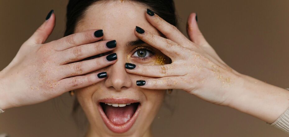 This design is very easy to repeat. Just apply black color to your nails, buy Halloween-appropriate stickers (any set will have these eyes), stick them on, and secure them with a clear top coat.