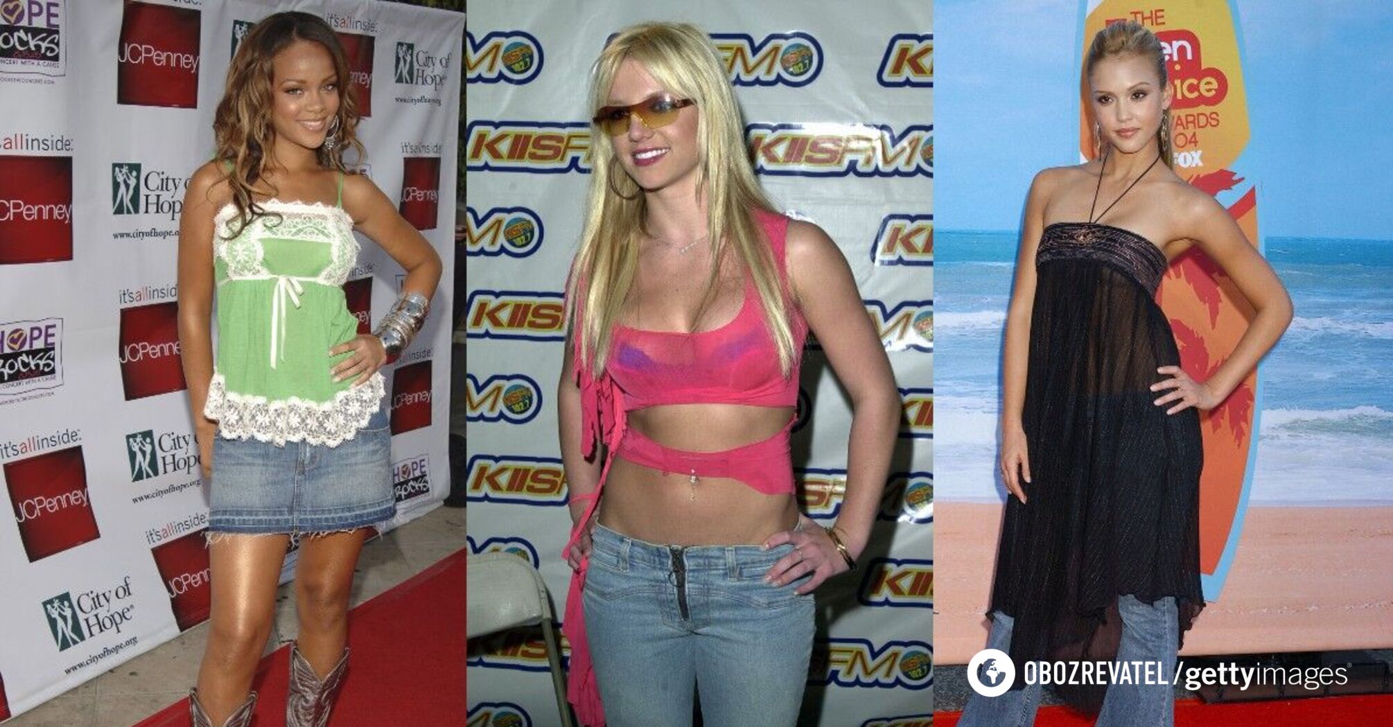 Pants and skirts with a low waist were a must-have in the wardrobe of 00s fashionistas. This trend emphasized the figure. It was usually complemented by cropped tops, shirts, and other clothes that covered only the neckline. Britney Spears loved to dress this way.
