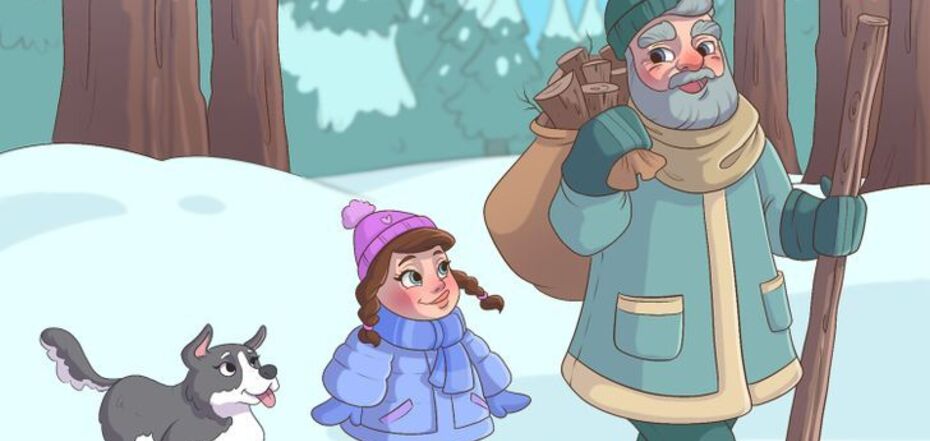 The mistake is that there are no footprints of a man in the snow.