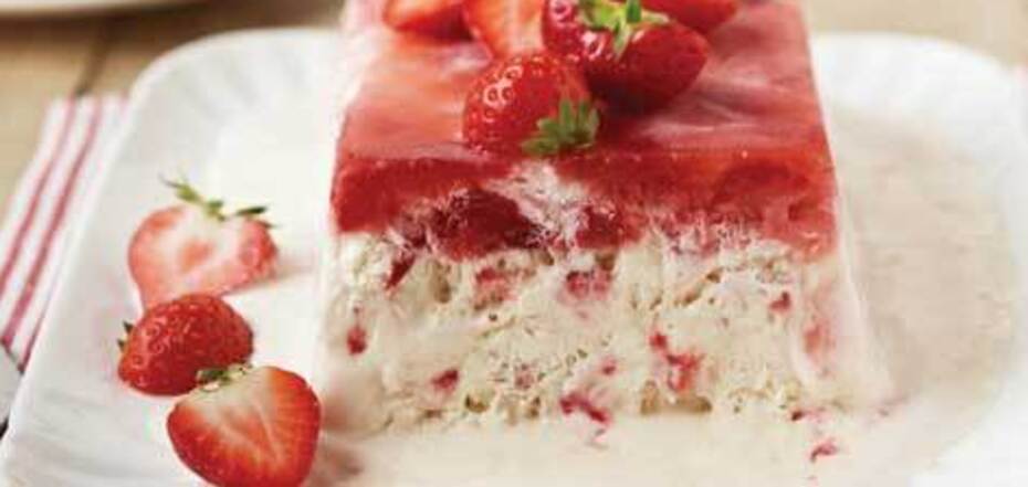 14. Dissolve another packet of jelly in hot water, let it cool completely, and pour over the strawberries on the cake.