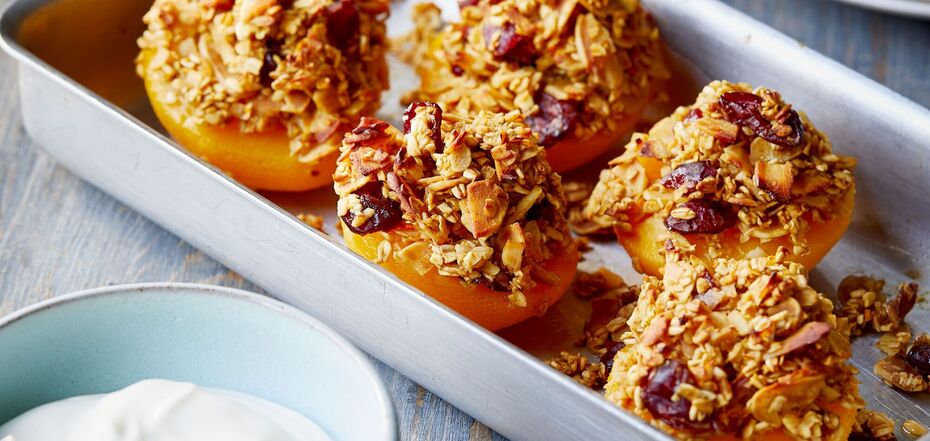Baked peaches with granola for breakfast: stay juicy and healthy