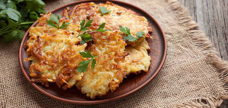 We are used to frying traditional potato pancakes (deruny) in a pan. Therefore, the dish can turn out a bit greasy. To prevent this from happening and make the pancakes juicy and soft, you can bake them.