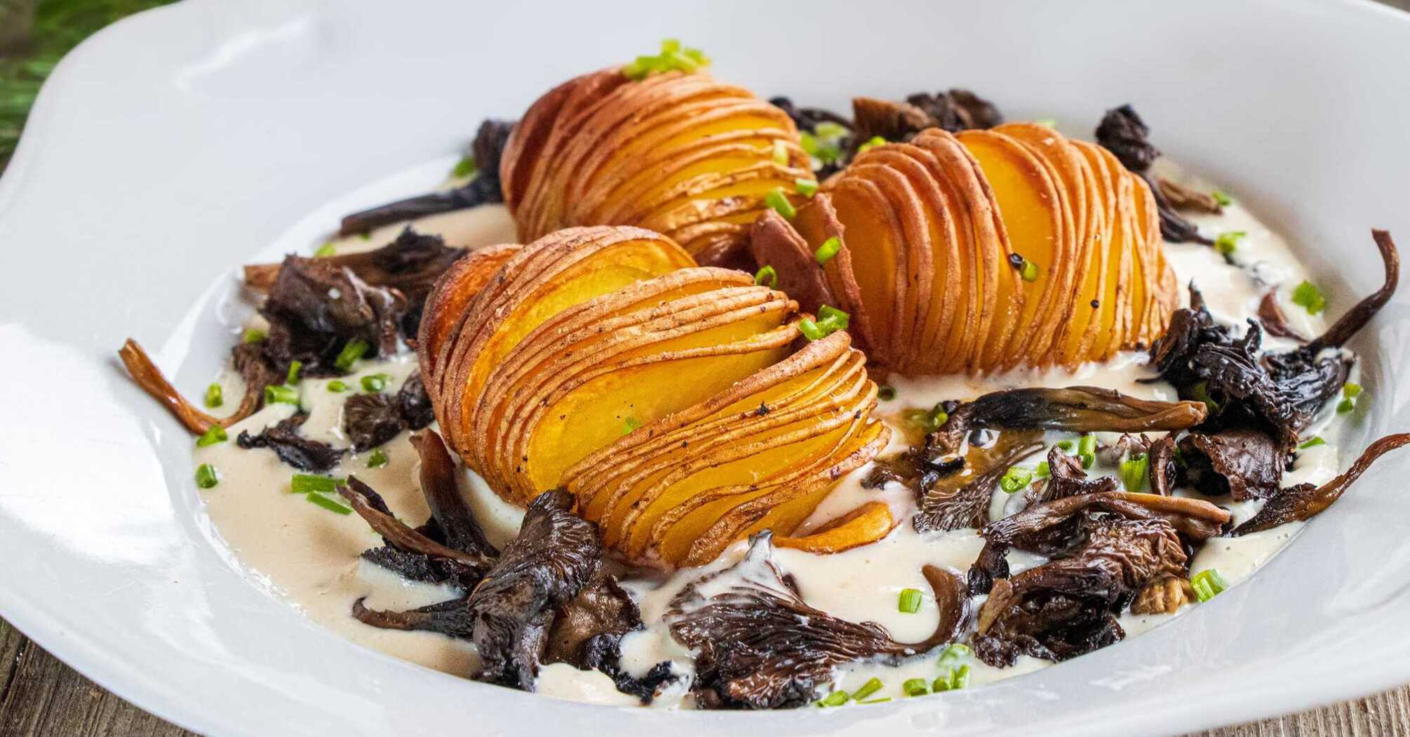 The cook shared in Instagram a recipe for very tasty baked potatoes with mushrooms and sour cream sauce.