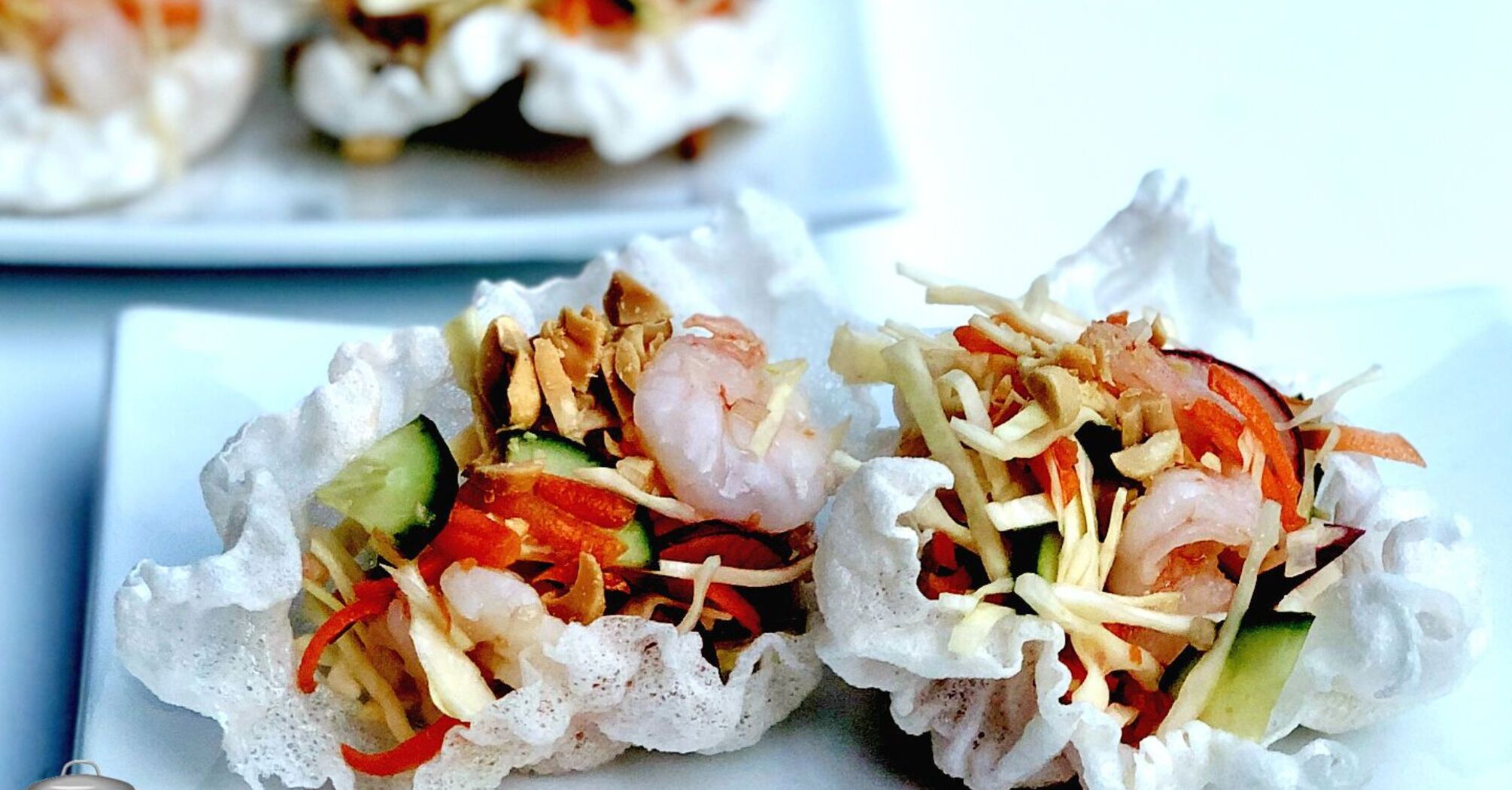 If you need to prepare a festive snack quickly, use rice paper. Just throw a piece of it into heated oil, and in just a few seconds you'll have a ready-made chip. You can put any filling in it.