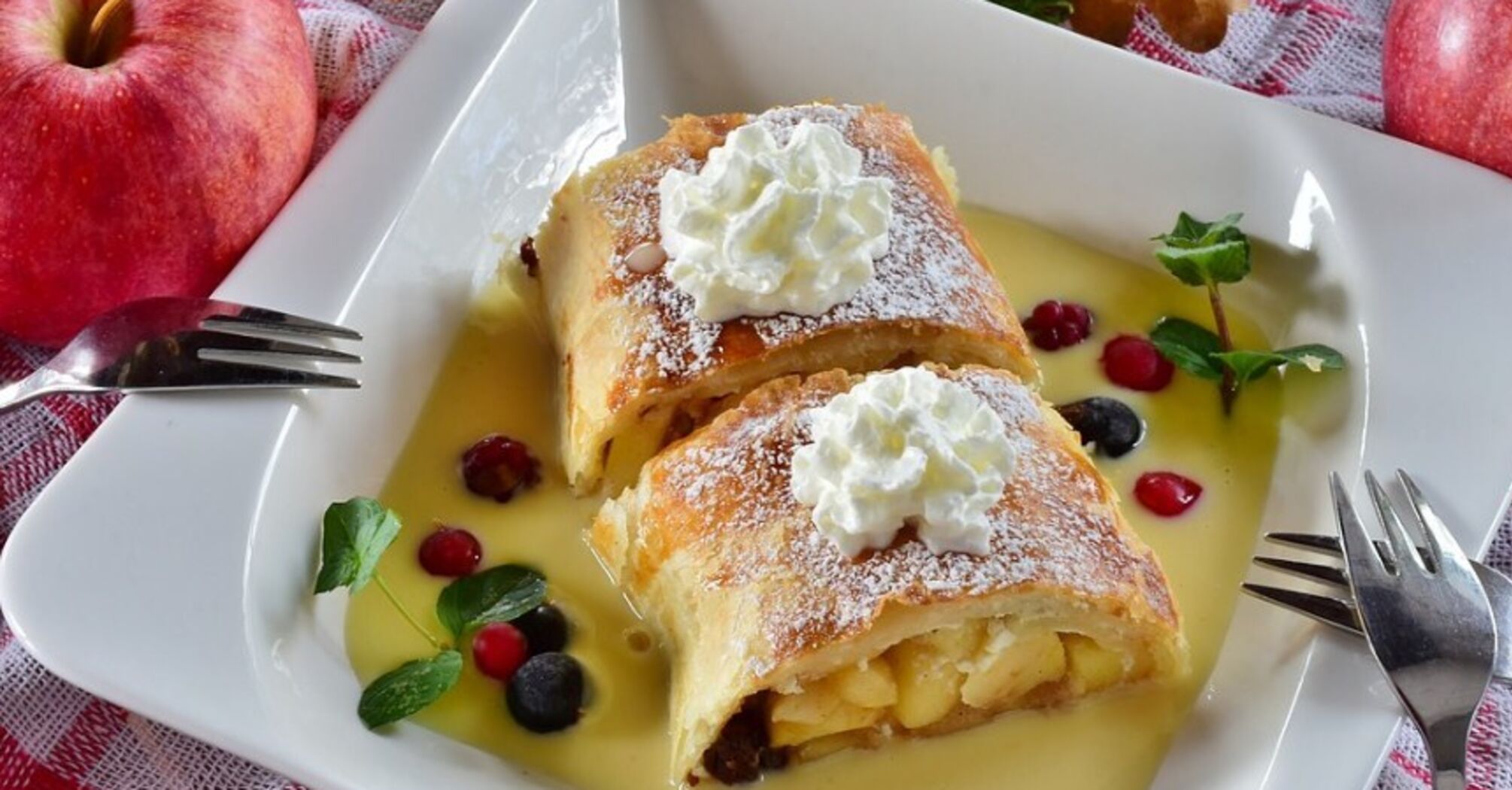 Strudel can be called a traditional autumn pastry because it is during this period that the fruits that can be used to make the dessert, such as apples and pears, ripen. There are many techniques, but if you are short on time, you should use the simplest one. You can take ready-made puff pastry and make the filling in a frying pan.