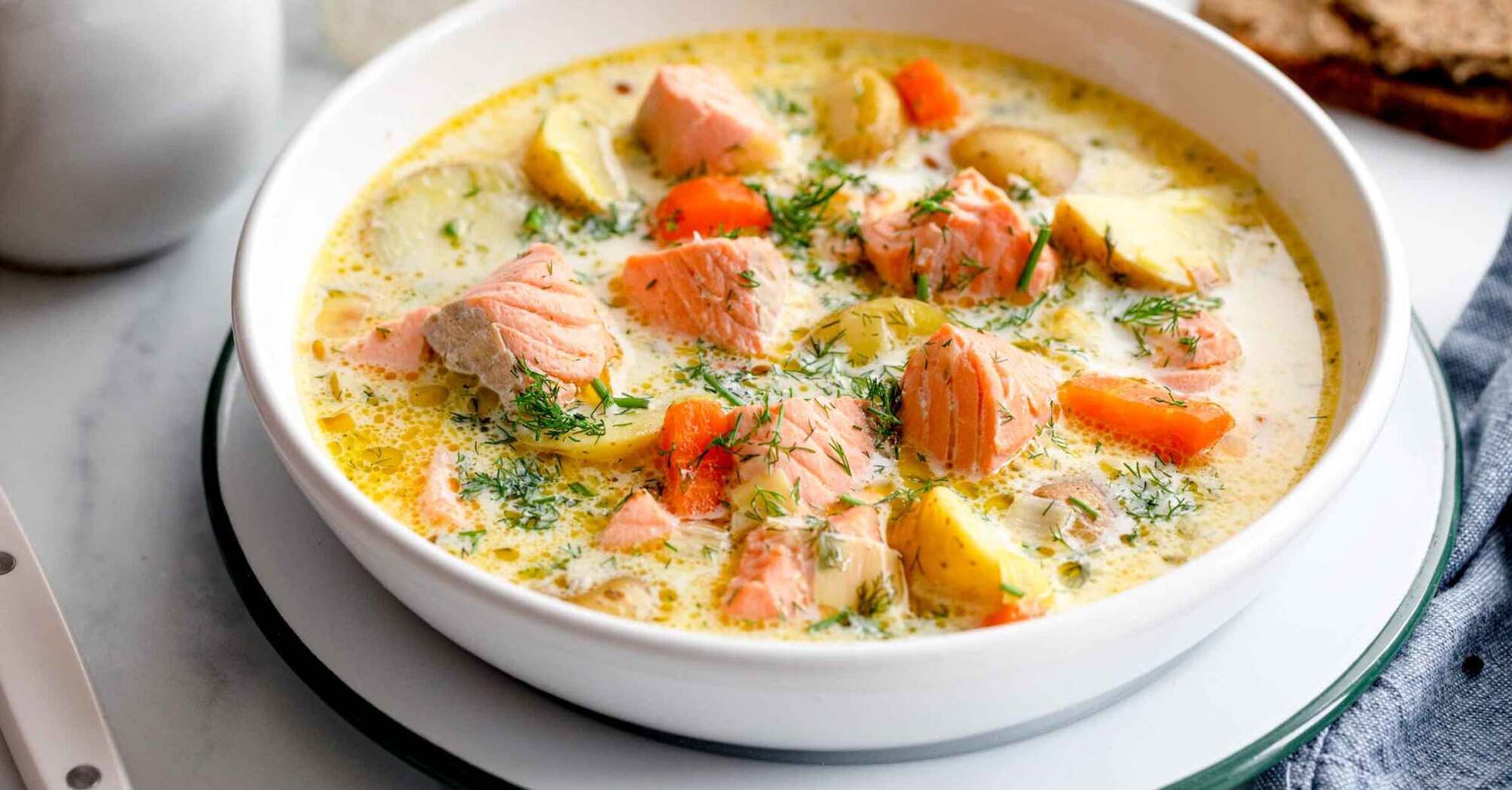Soup is one of the most popular lunch dishes. If you use the right ingredients, you can get a very nutritious and healthy soup. Salmon, cream, and fresh vegetables go well together.