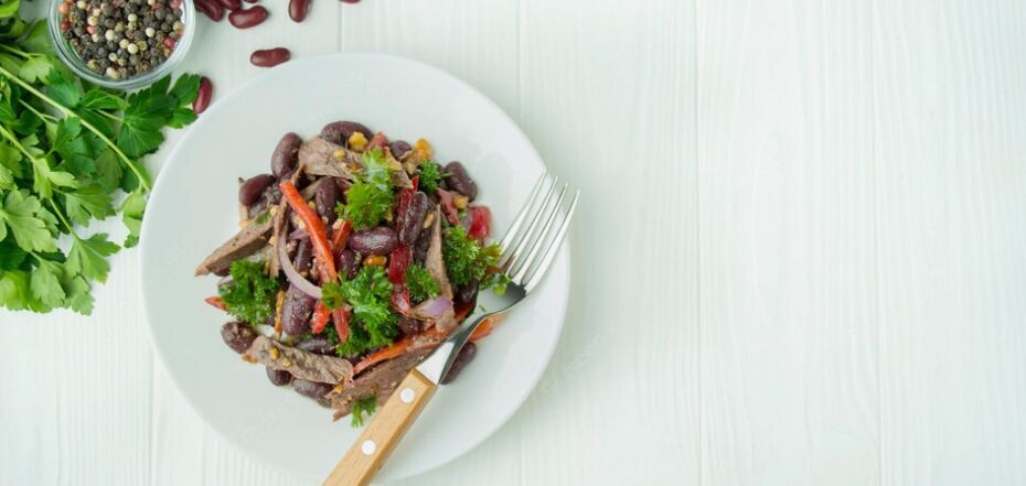 Georgian Tbilisi salad is a combination of bright flavors and colors, as well as spices. The salad is hearty thanks to the beef, juicy thanks to the vegetables, and beautiful thanks to the variety of ingredients. It is prepared without mayonnaise, which makes it less harmful.