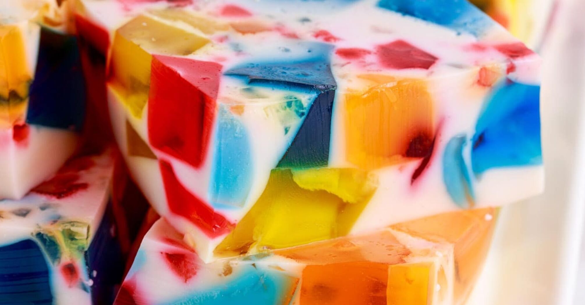 Broken Glass is a popular dessert made of jelly, milk, and cookies that is often prepared in Ukrainian families. You don't need an oven to make it, because the cake hardens in the refrigerator. But to make the taste even more delicate and sweet, you should add condensed milk to the recipe.