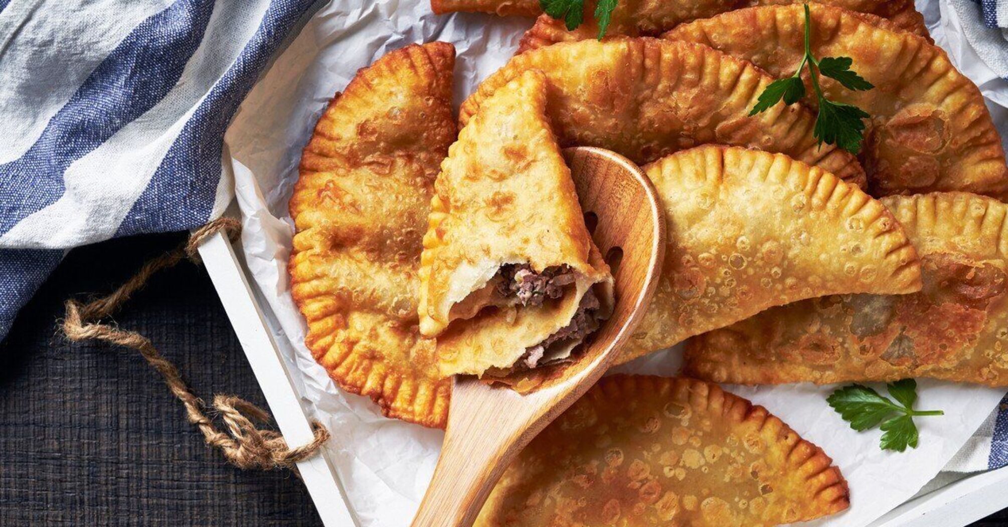 Chebureks from thin crepes: no need to roll out the dough