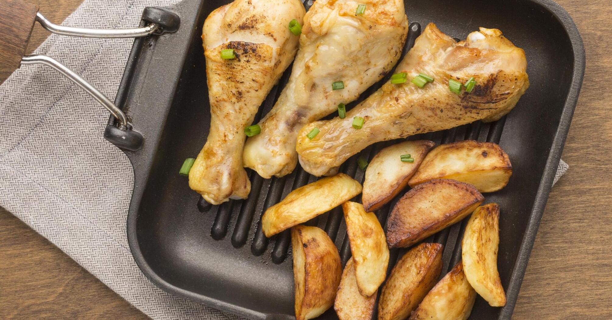 A food blogger with the nickname recepti_dariko mentioned this recipe on her Instagram page. She suggested cooking potatoes baked in the fat from chicken drumsticks, and, of course, the drumsticks themselves, cooked on the grill.
