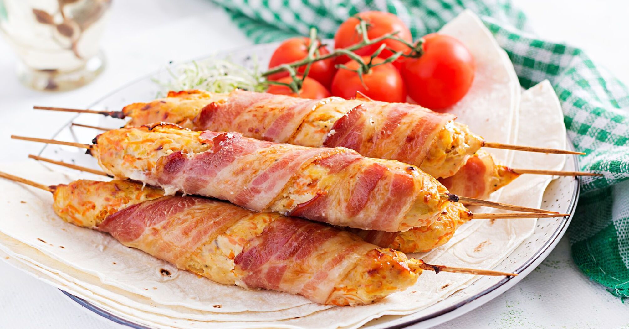 Chicken kebabs in bacon: a delicious summer dish in the oven