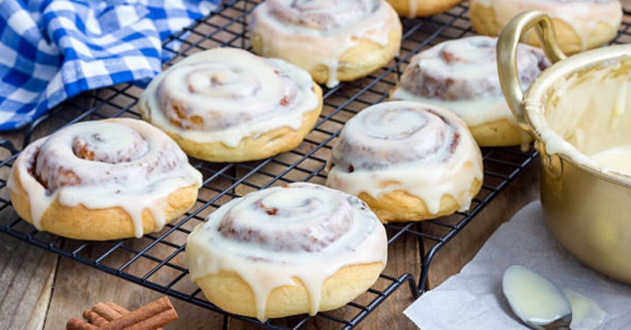 6. Bake the cinnabons at 180 degrees for 20-30 minutes. Then let cool for 5-7 minutes and cover with cream.