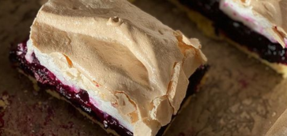 4. Put the currant mass on the (already baked) cake (let it cool slightly), put the meringue on top.