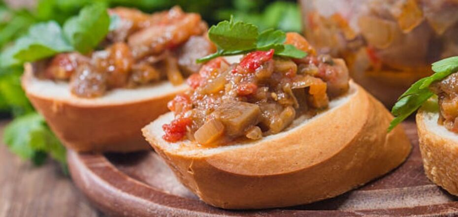 Eggplant and pepper bread spread: it is cooked faster than caviar