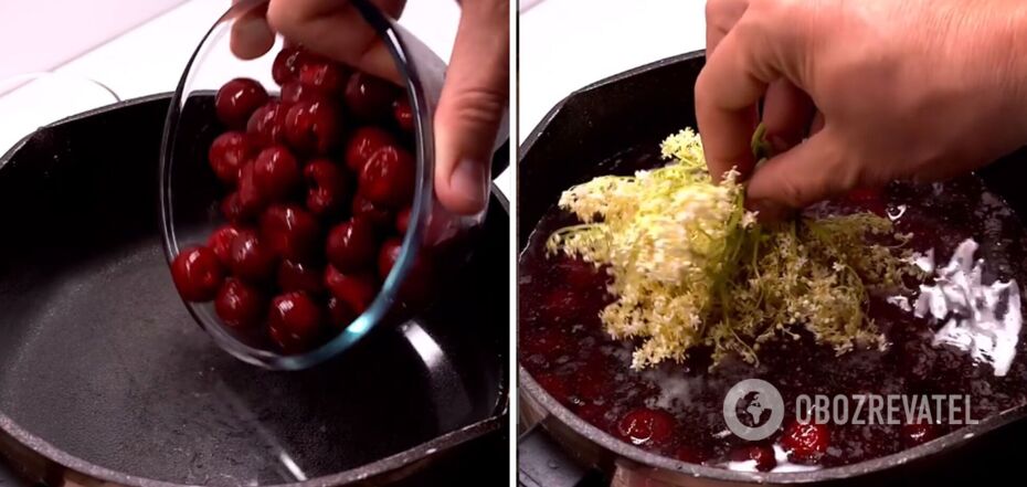 Just think about it: you can drink flowers. I don't know about you, but I find it very exciting. And if you add cherries and cinnamon, then that's it, hide in the rye, because it's a blast. Elderberries can be dried, and cherries can be frozen. We don't have many principles here.