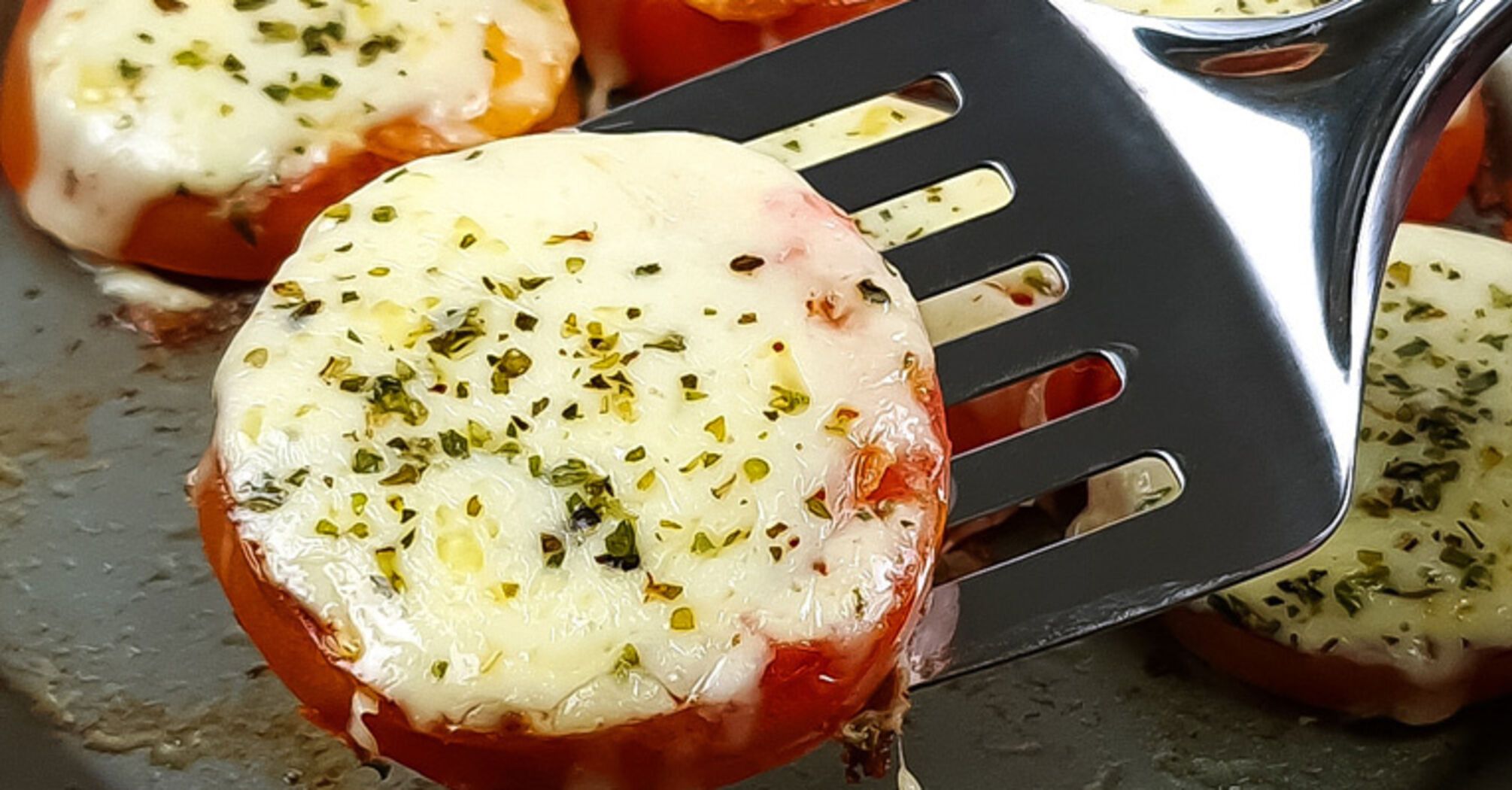 Elementary tomato appetizer in 5 minutes: add garlic and lots of cheese