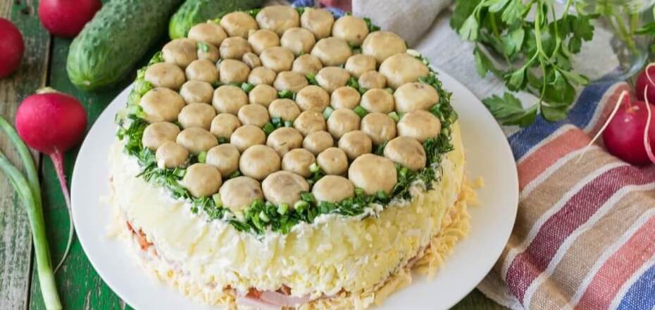 Festive Mushroom Lawn salad: better than Olivier and Shuba