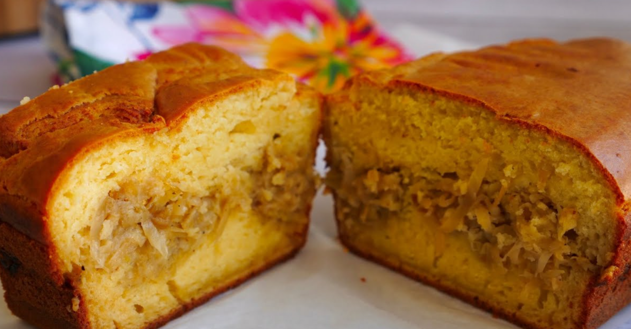 4. Pour half of the batter into the mold, then the filling, and then the rest of the batter on top.