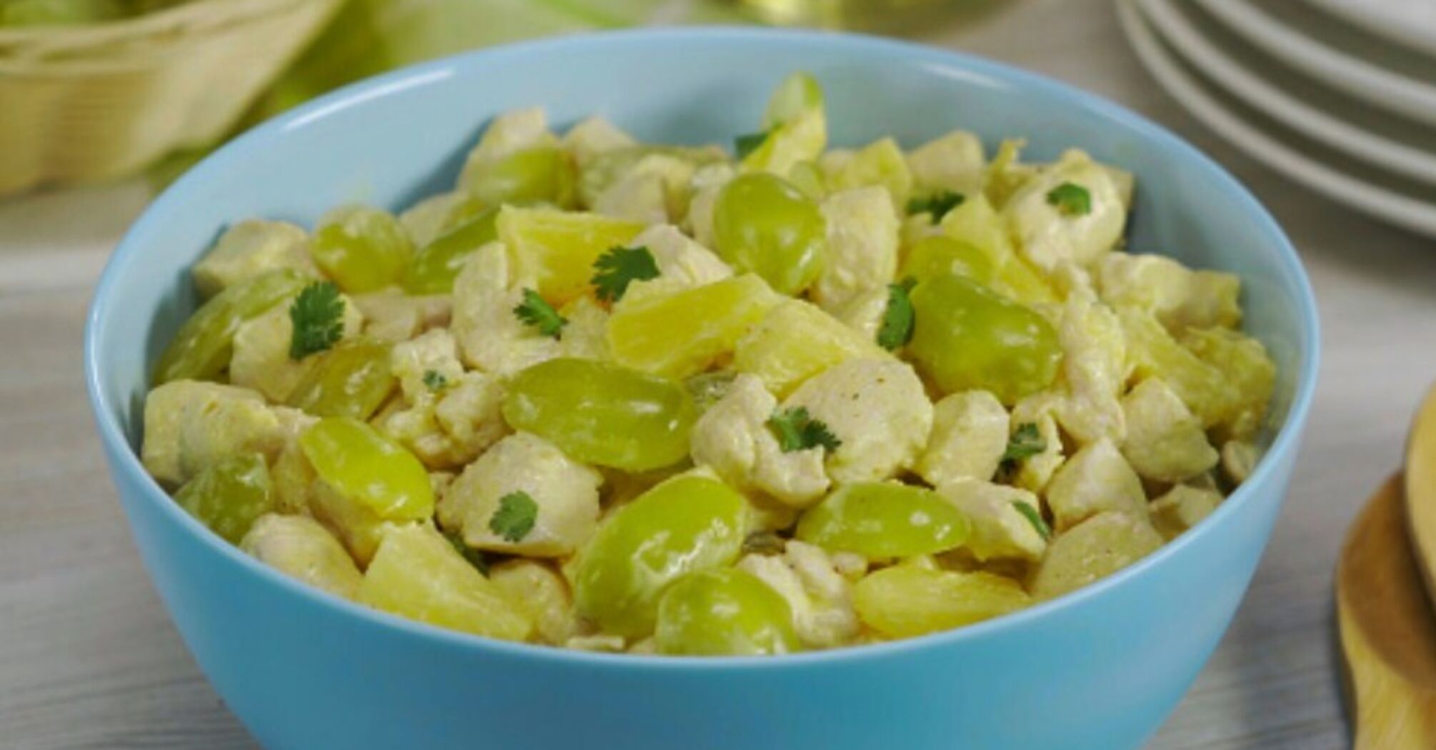 Grapes and chicken are a budget-friendly yet delicious and sophisticated combination in salads. Traditionally, boiled eggs and hard cheese are added to this dish. However, you can diversify the salad a bit and make it fresh by adding walnuts. They go perfectly with juicy berries.