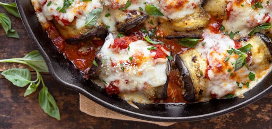 Eggplant is a great base for a hearty lunch. You can make a very simple and quick casserole from such a vegetable. Add a lot of cheese, as well as tomatoes for juiciness. Such a dish is definitely enough for the whole family.