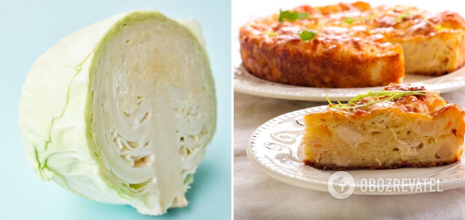 Cabbage is always a successful addition to dishes and a really versatile vegetable that harmonizes well with many ingredients. In addition to borscht and salads with cabbage, you can also prepare a bay pie. The name speaks for itself: you need to prepare the ingredients and pour the filling. This is a great option for a hearty lunch or dinner.