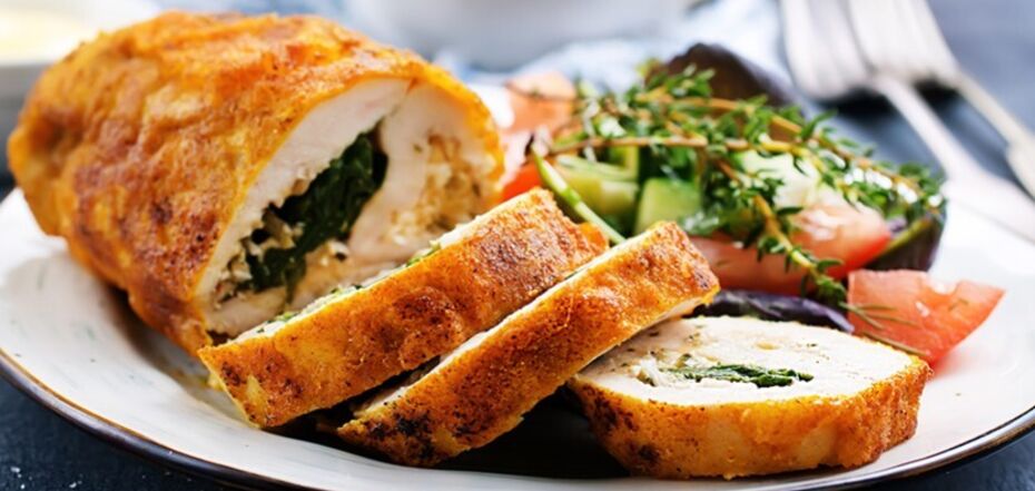 A roll is a dish where you can combine your favorite ingredients, but spend a minimum of time preparing it. Especially if you choose minced chicken for the base. The texture will be light and dietary. For a crispy crust, add breadcrumbs. The dish is baked quickly enough in the oven.