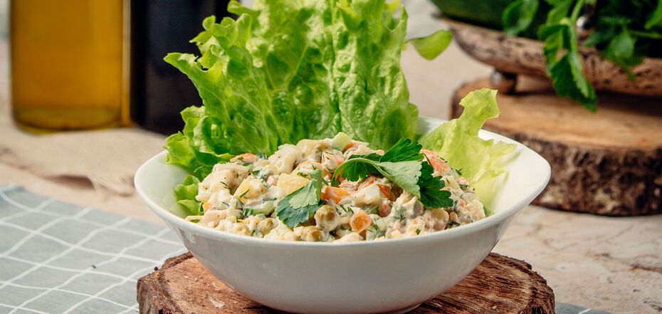 3. Add corn, pickled cucumbers, grated cheese, mushrooms, chicken, sour cream, or salad mayonnaise to the plate.