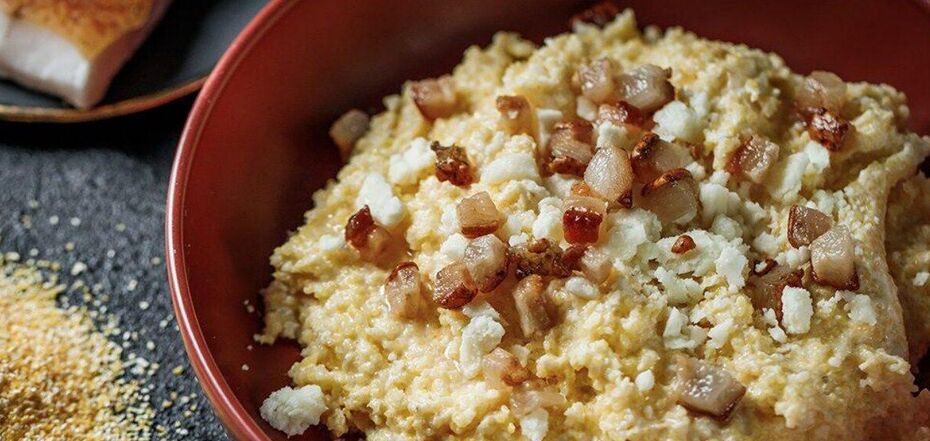 Banosh is a tasty and satisfying dish based on corn grits and topped with bacon and cheese. The Ukrainian dish is prepared with water and milk, but banosh is especially tender and flavorful with homemade sour cream. The main thing in the cooking process is to observe the proportions.