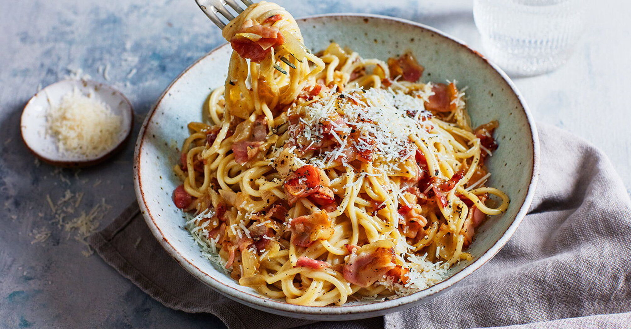 The idea of making delicious Carbonara pasta is published on the Instagram page of chef Olga Ryabenko (olga_riabenko). Regular store-bought spaghetti will do.
