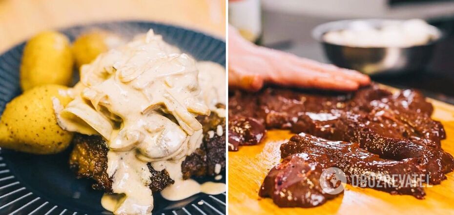 3. Preheat, then put the liver. Cook for 2-3 minutes over high heat on each side. Turn off the heat and leave the liver under the lid.
