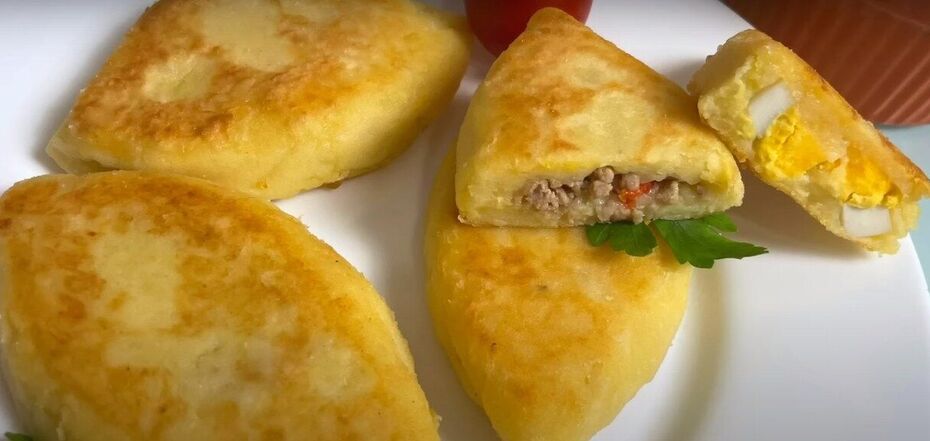 Potato patties are the same as potato zrazy and pies with filling. You can make them with different fillings: meat, minced meat, vegetables, stewed cabbage and even offal. Both the oven and the frying pan are suitable for cooking.