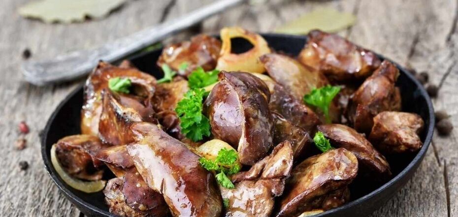 According to the following technique, for a delicate flavor and soft texture, the liver should be stewed in a large amount of sour cream and vegetables.