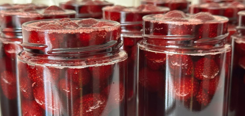 5. Put all the strawberries back into the hot syrup and leave them overnight.