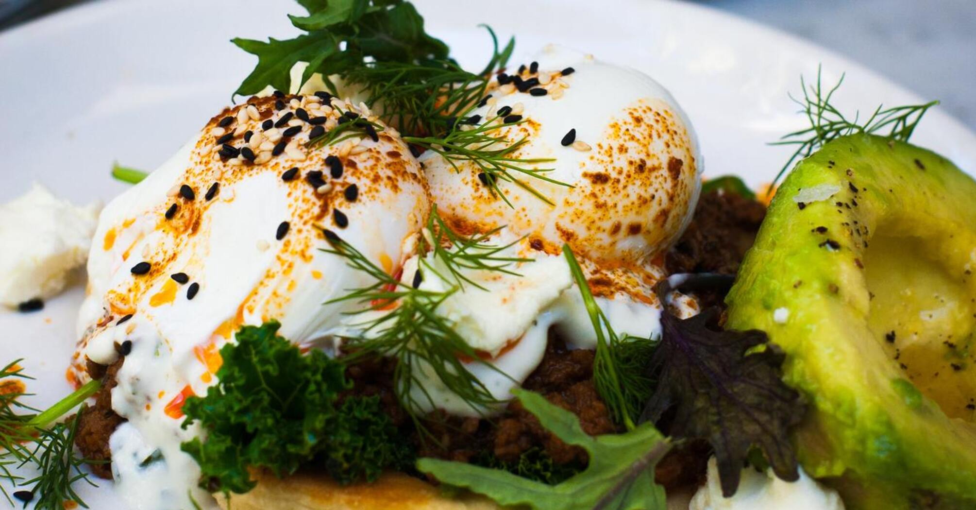 4. Cook the poached eggs over medium heat for 1 minute, then turn off and leave for another 2 minutes (if you don't like them too runny, you can keep them a little longer). You can spread the delicious bread with cream cheese and put tomatoes, avocados, herbs, or fish on top. Finally, put the poached meat on top and sprinkle with pepper.