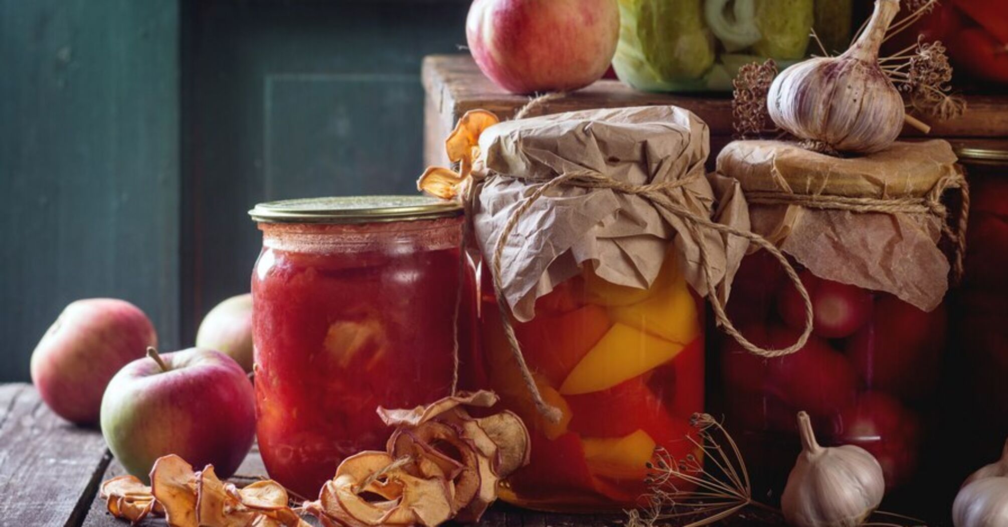 You can preserve an enormous variety of foods. Even fruits such as peppers and apples go well together in one jar. It turns out to be a rather spicy and flavorful appetizer that is perfectly stored and will successfully complement the festive table.