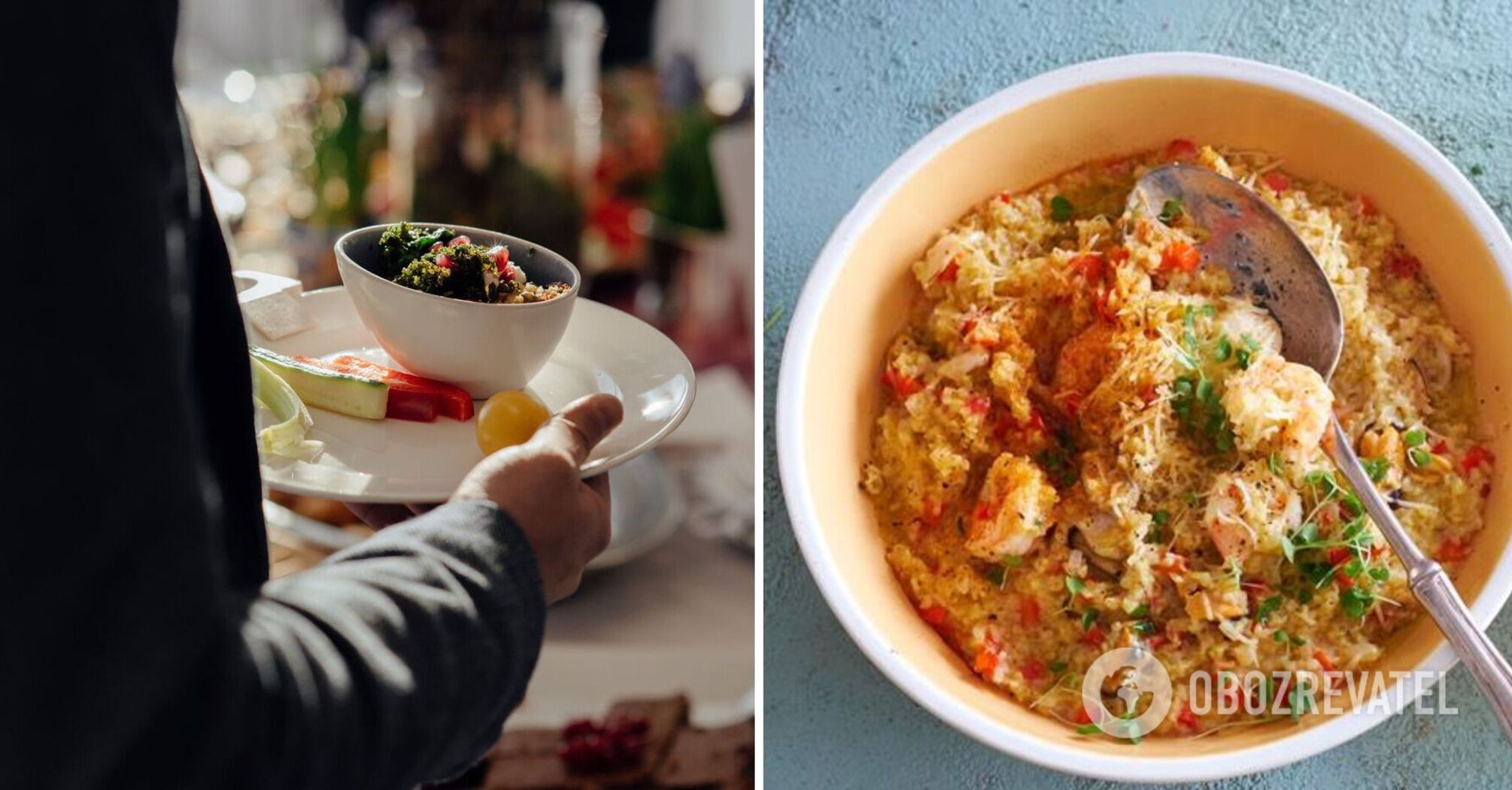 Risotto is a traditional Italian dish. It is made mainly from rice. But if for some reason you don't eat this product or just want to diversify your tastes, you should use bulgur. It turns out to be very crumbly and dietary.