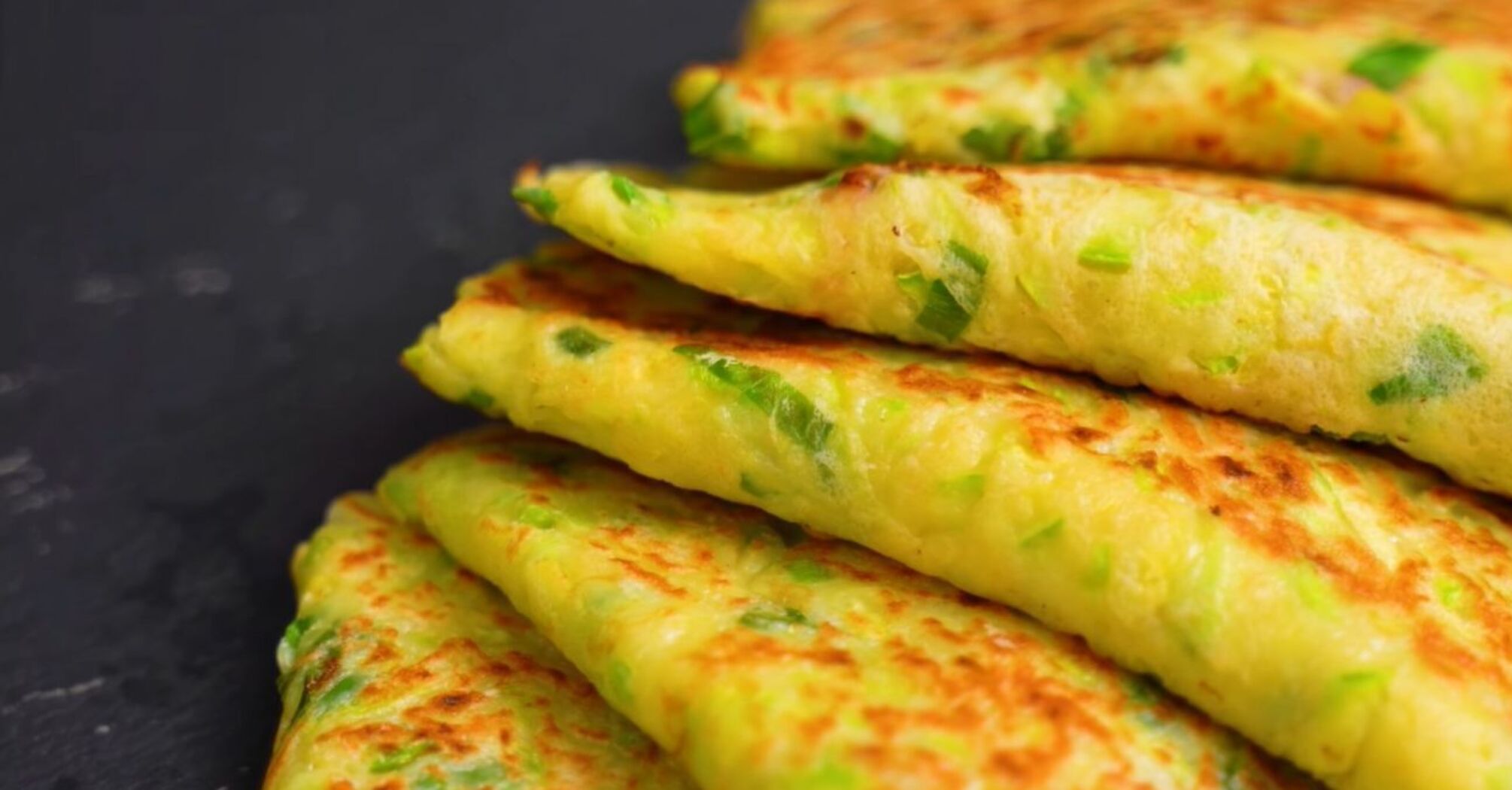 5. Put two tablespoons of zucchini dough on a preheated, oiled frying pan, form a pancake, and wait for the top to set.