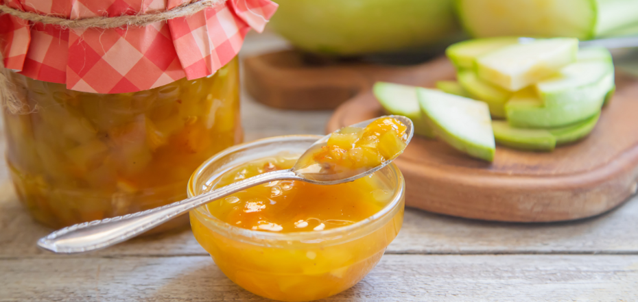 Seasonal zucchini can not only be fried and baked, but also made into jam. Just add the right amount of sugar and the vegetable becomes caramelized and sweet. During cooking, the cubes remain intact and do not turn into jam.