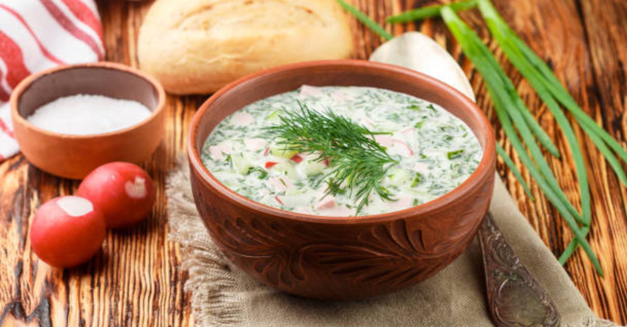 Okroshka is a cold and truly refreshing first course cooked with ready-made products and fresh vegetables. In addition, is can be based on yogurt, sour cream, or kvass.