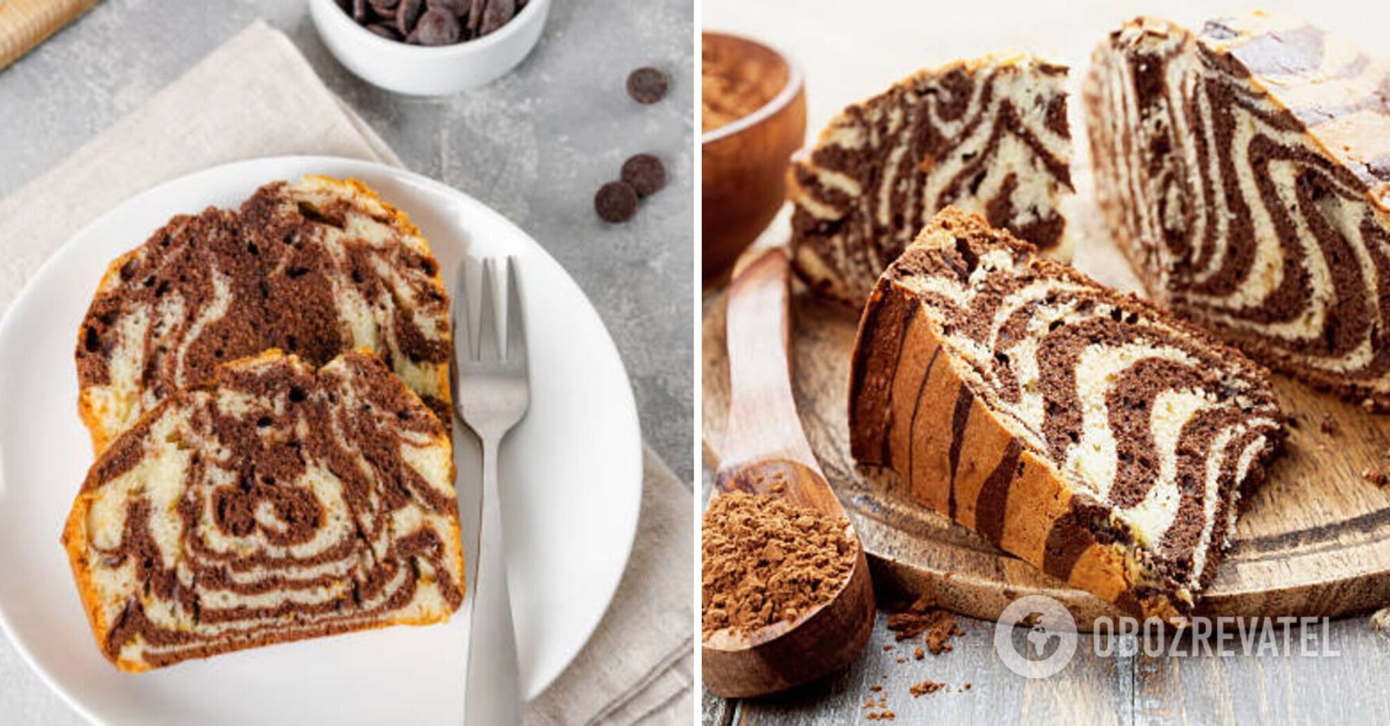 "Zebra" cupcake is called because it is prepared on the basis of brown and white dough, thanks to which the pastry has a striped color. The dough in this dessert is not fastidious: it can be made with kefir, milk or sour cream. But in order to ensure that it is not mixed in the baking process and did not turn out the usual chocolate dumpling, it is important to observe the proportions.