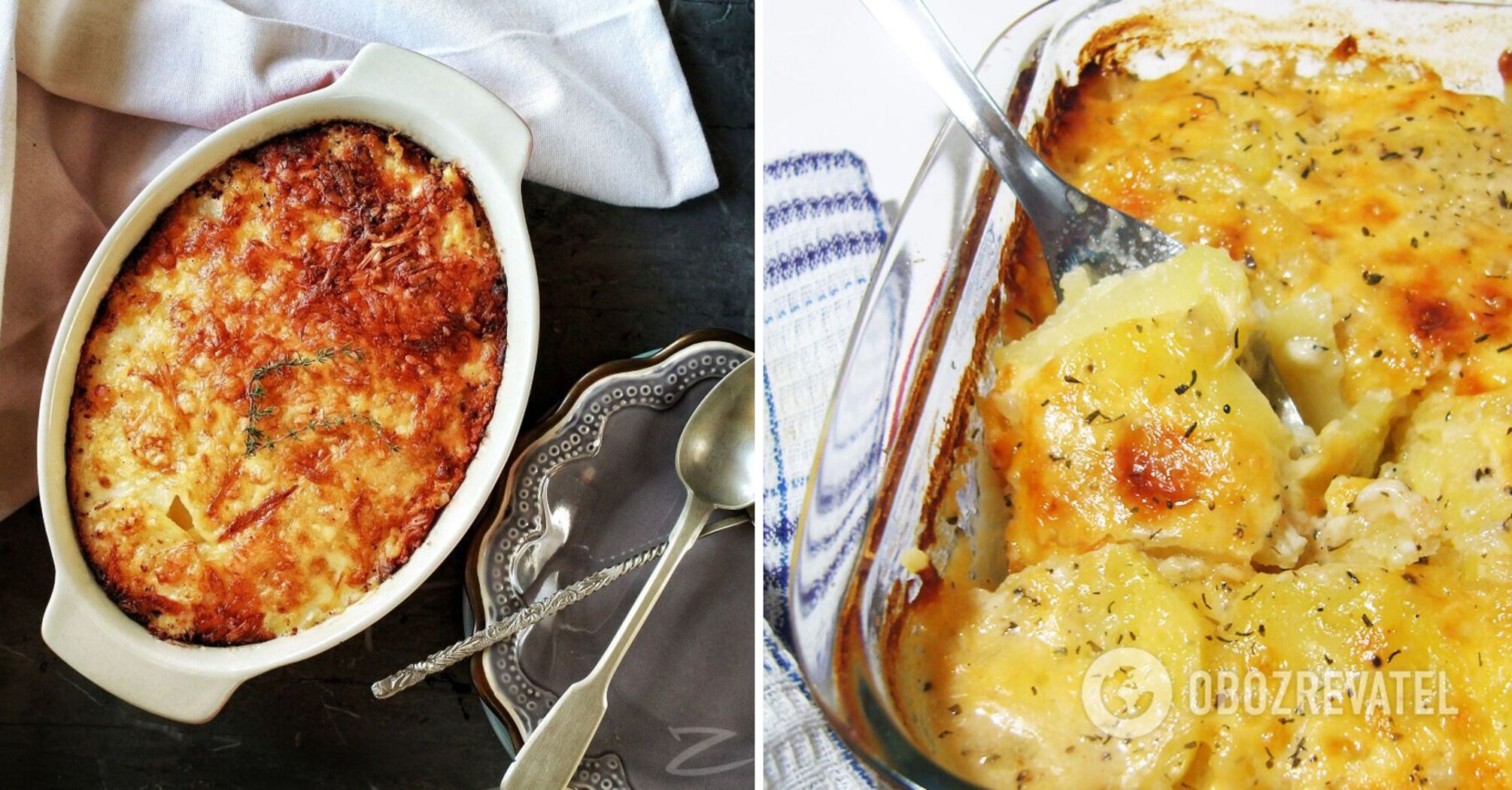 Potato gratin is exactly one of these dishes. It's not cooked that often, but for good reason. It requires a minimum of ingredients, time, and effort, and the dish looks so impressive and appetizing that it's hard to resist.