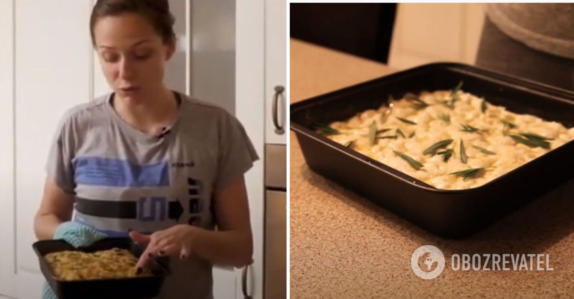 Mix the flour, salt and yeast in a large bowl in which the dough will rise. Add 1 cup of warm water (mix boiling water and cold water to get the right temperature). Pour in the water, knead the dough (you can use a spatula, just to mix everything evenly), cover with a towel and immediately send to the refrigerator for 16-18 hours. You can also for longer, I had the dough and 2 days in the refrigerator, waiting for its time. Take the dough out of the refrigerator and let the air out of it by moving it with your fingers. We transfer it to a greased with butter, then olive oil mold (you can just olive oil) and let it rise now in the heat. Another 2-4 hours. When the dough has risen once again, watered with about 2 spoons of olive oil and with fingers make "brains" on its surface. As if massaging the dough to make crinkles. Sprinkle with coarse salt and rosemary (you can put fresh tomatoes on top, parmesan, etc.) and into a preheated oven-220 degrees for 25 minutes. When a golden crust appears on top your focaccia is ready! It should not be pale or heavily browned.