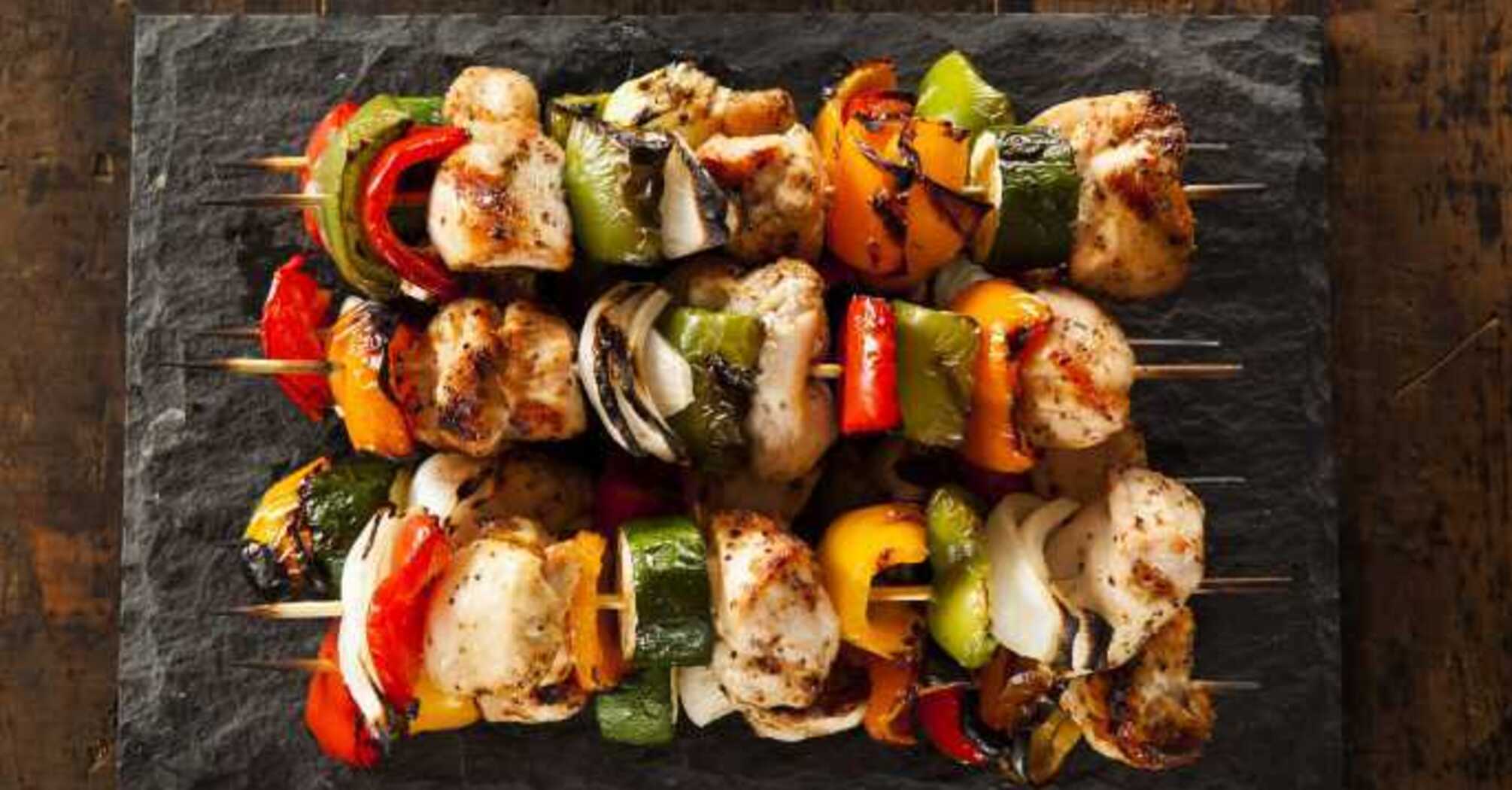 8. Put kebabs on a wooden skewer, alternately thread vegetables with meat balls.