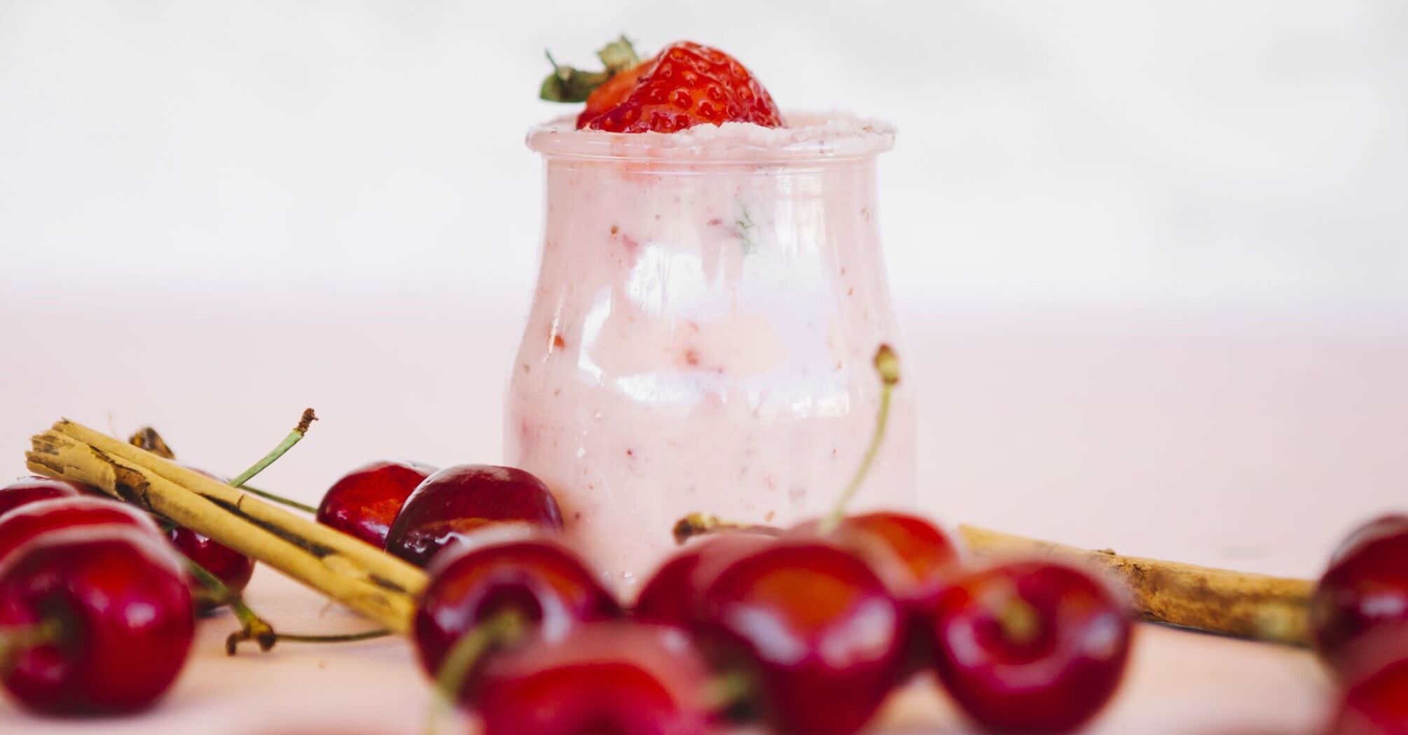 2. Beat the yogurt with cherries and honey in a blender. Strain through a sieve.