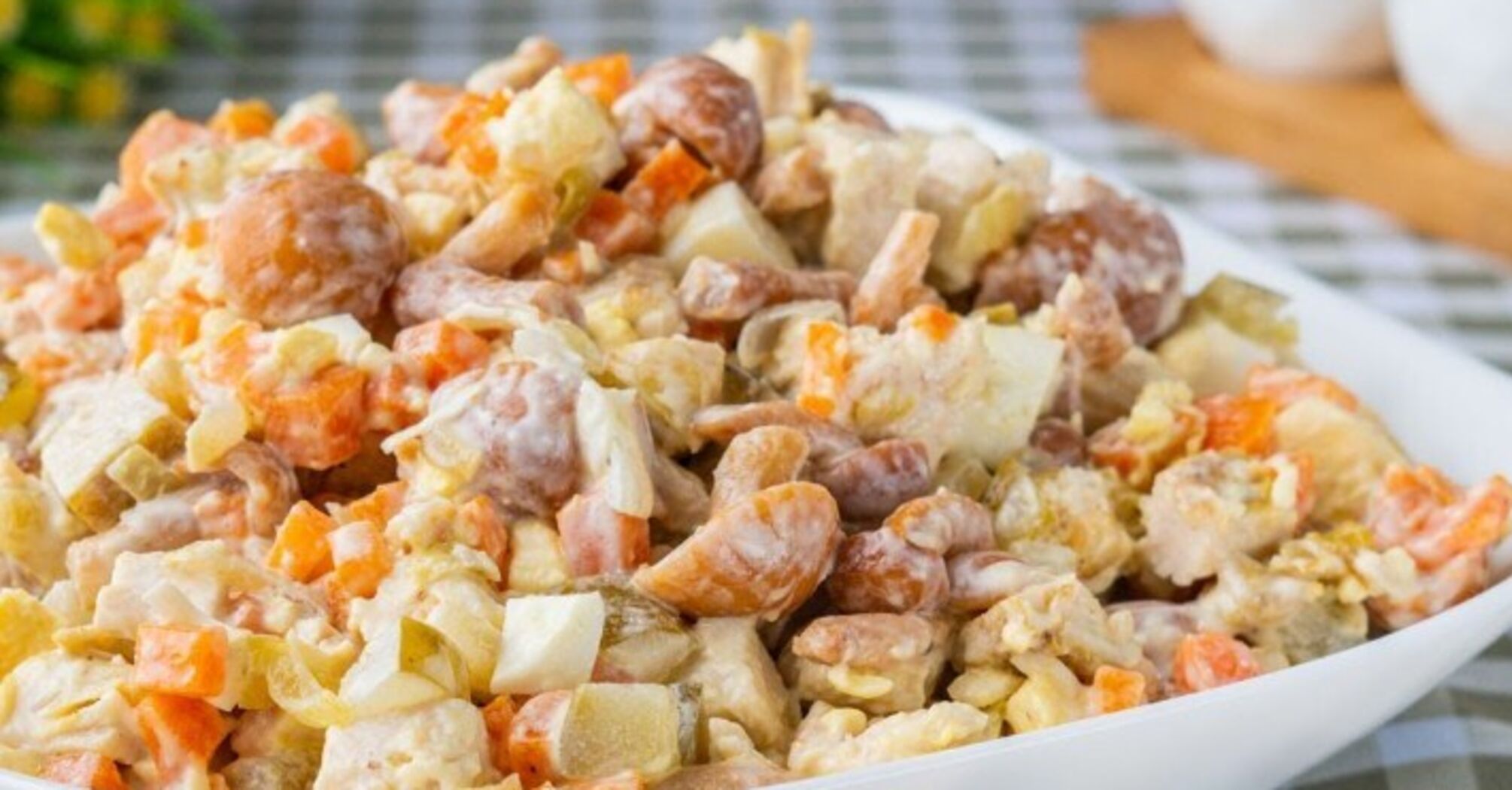 Food blogger Oksana Pashko shared a recipe for Masherivsky salad with mushrooms, chicken, and mayonnaise on her YouTube channel (Cooking with Oksana Pashko).