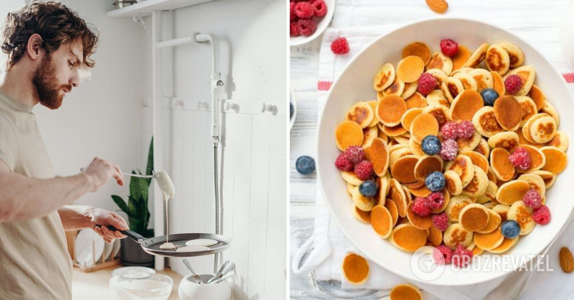 These pancakes will surprise you not only with their taste but also with their appearance. They are so tiny that you can fit several of them in the palm of your hand. Children will like this dish the most. It is prepared using a special technology.